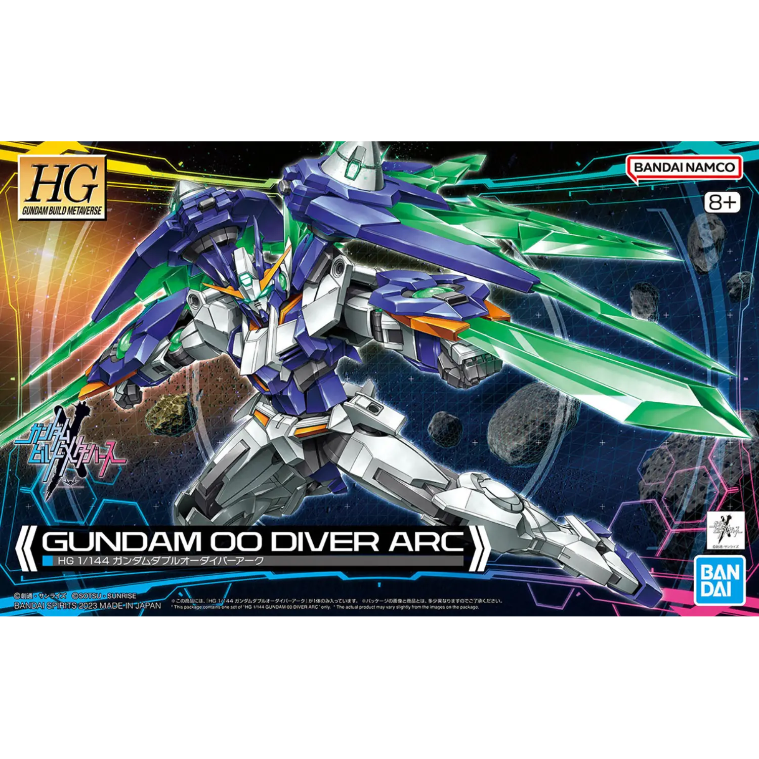 The 1/144 Gundam 00 Diver Arc from Gundam Build Metaverse showcases special luminescent effect parts crafted from condensing resin that absorb and emit light. This High Grade (HGGBM) model kit includes a newly designed GN Drive with a telescopic gimmick, dual GN Swords, and 3D metallic seals for a glossy finish.