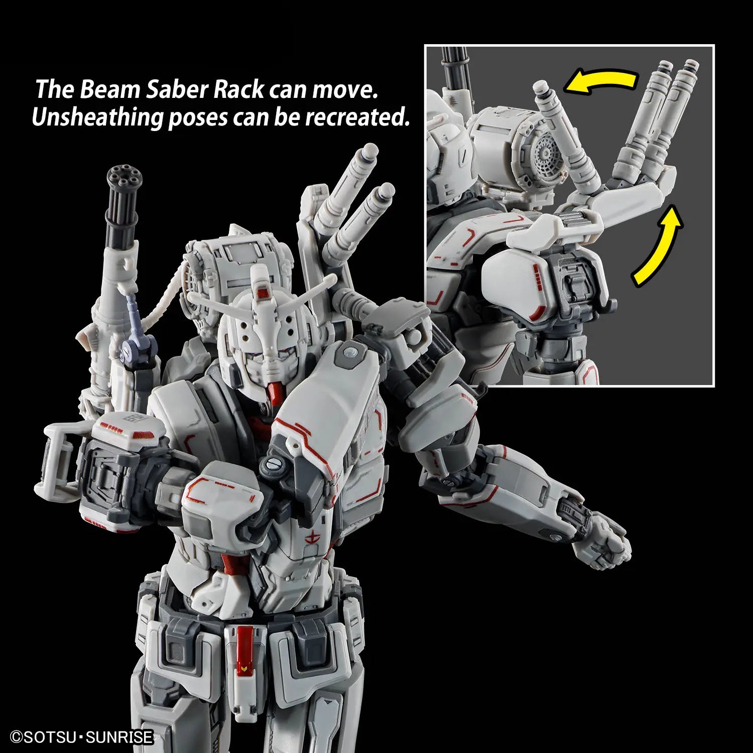 The Gundam EX from Mobile Suit Gundam: Requiem for Vengeance makes its debut in the High Grade 1/144 scale lineup. This kit faithfully recreates the detailed mechanical design and dynamic movement seen in the Netflix CG-animated series. Soft material is used for the shoulder-mounted Gatling’s feed belt, allowing realistic flexibility. The beam rifle can mount on the back via a joint connector, while three beam saber grips are stored on the backpack for easy access. The shield features high-density details on both sides, and stickers are included for optional markings and unit insignia. The model can be displayed in a variety of poses using a separately sold action base.