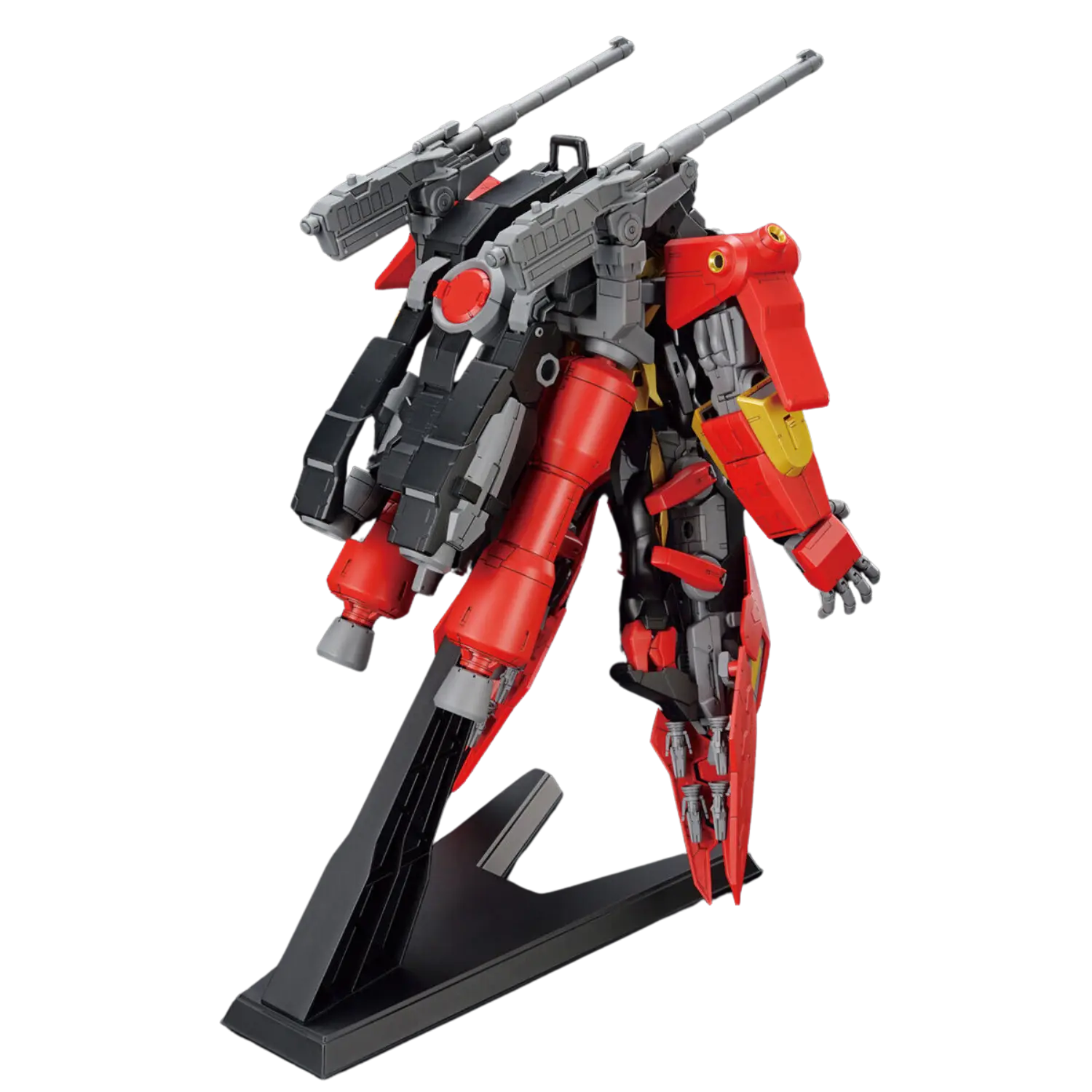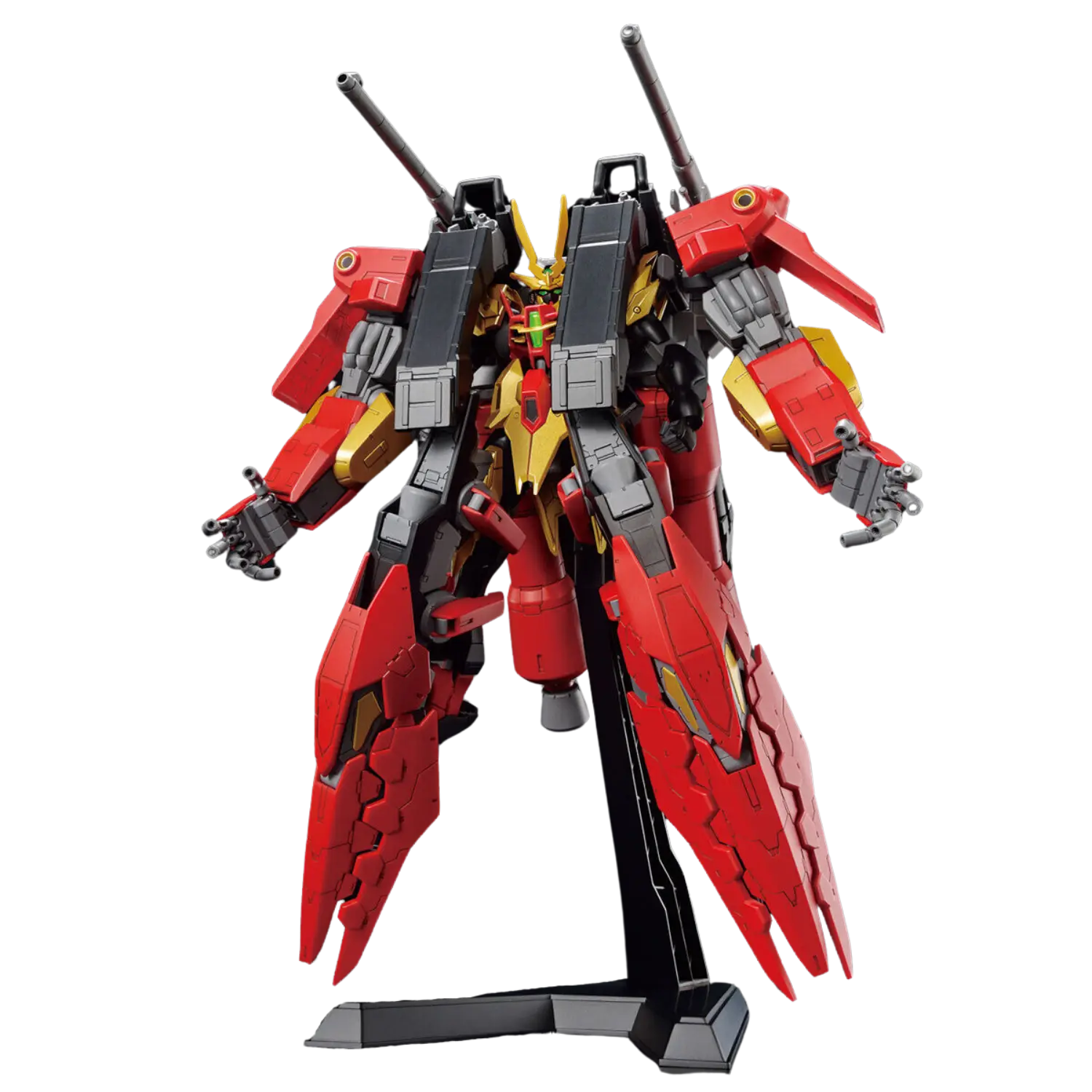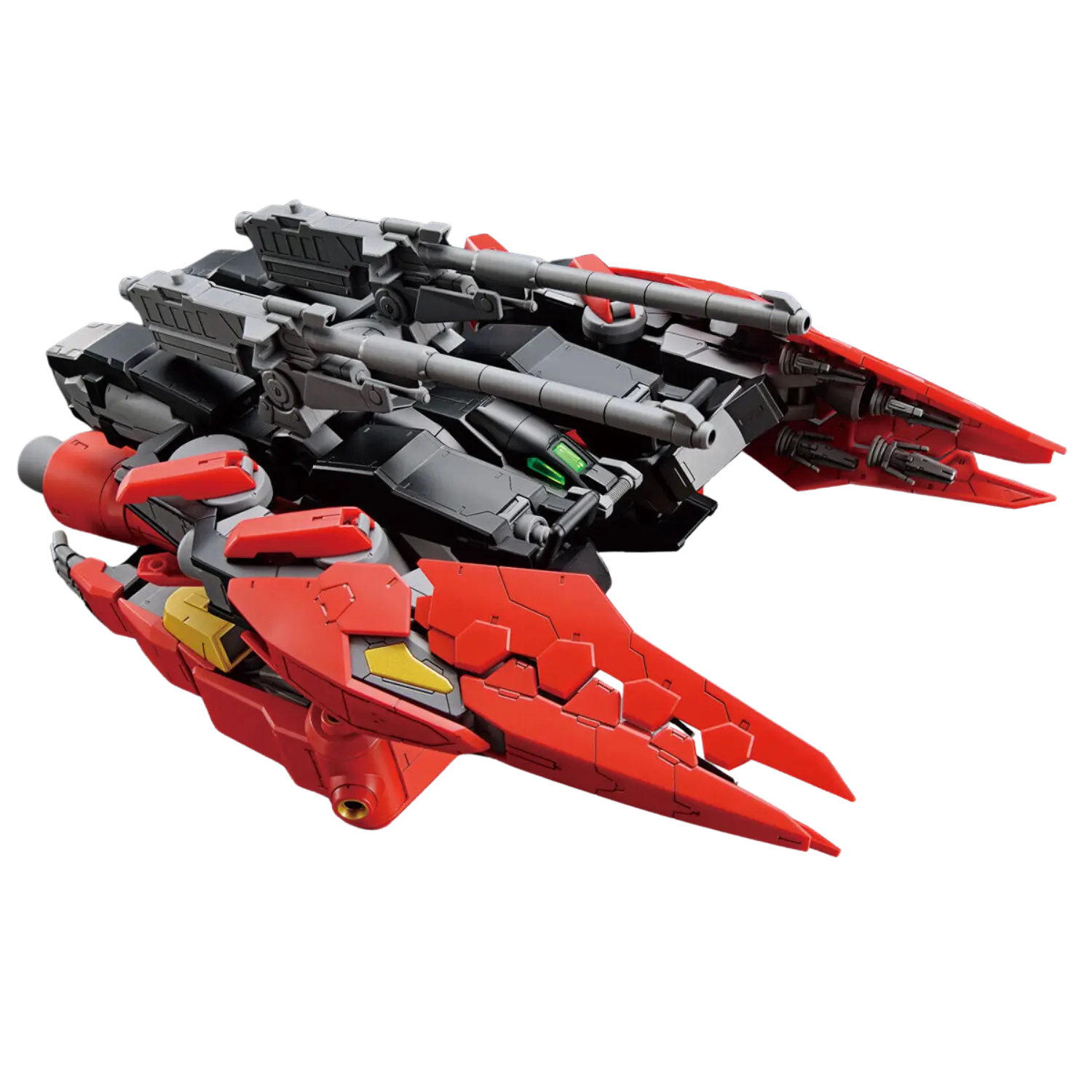 The 1/144 Typhoeus Gundam Chimera from Gundam Build Metaverse is a large-scale mobile suit with removable armor to recreate the Typhoeus Gundam and can transform into Mobile Armor mode. This High Grade (HGGBM) kit includes reflector bits with a dedicated display stand, joint parts, and lead wires for dynamic display options.