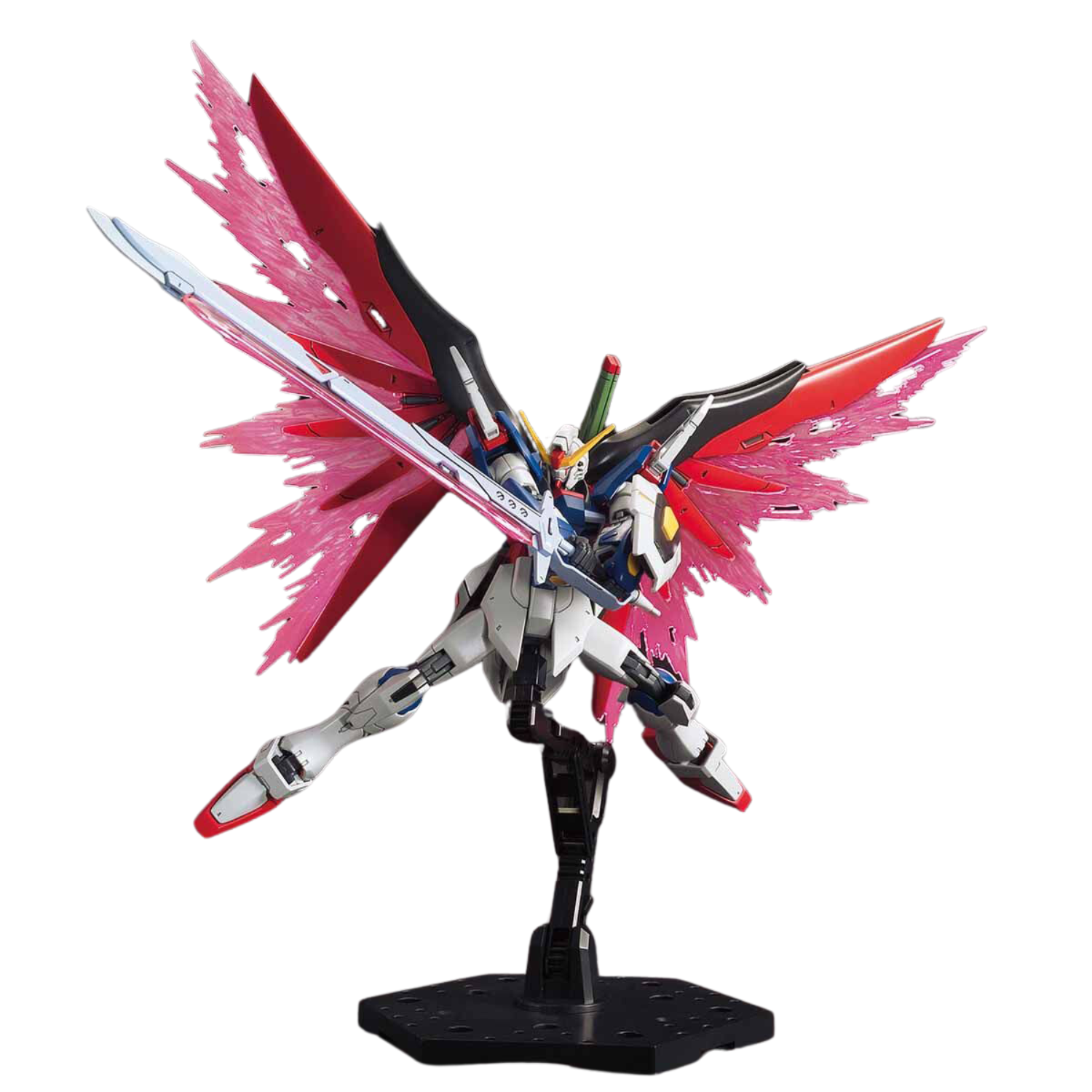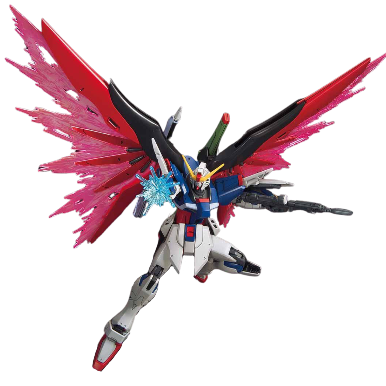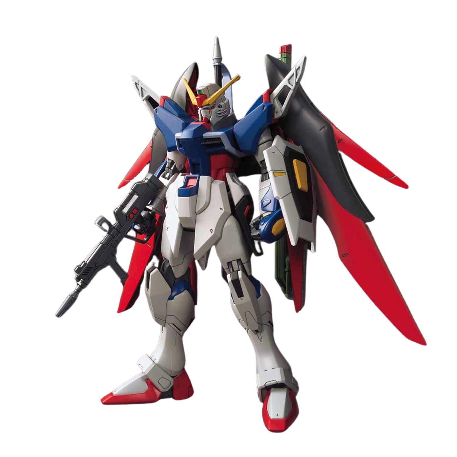 The HGCE 1/144 #224 Destiny Gundam, piloted by Shinn Asuka in Mobile Suit Gundam SEED Destiny, is a completely new mold featuring enhanced articulation and a striking array of weapons and effect parts. This updated kit includes clear-cast Wings of Light and various beam effect parts, allowing for dynamic and iconic poses. Molded in color for a stunning finish without the need for painting, this snap-fit kit also includes foil stickers for added detail.