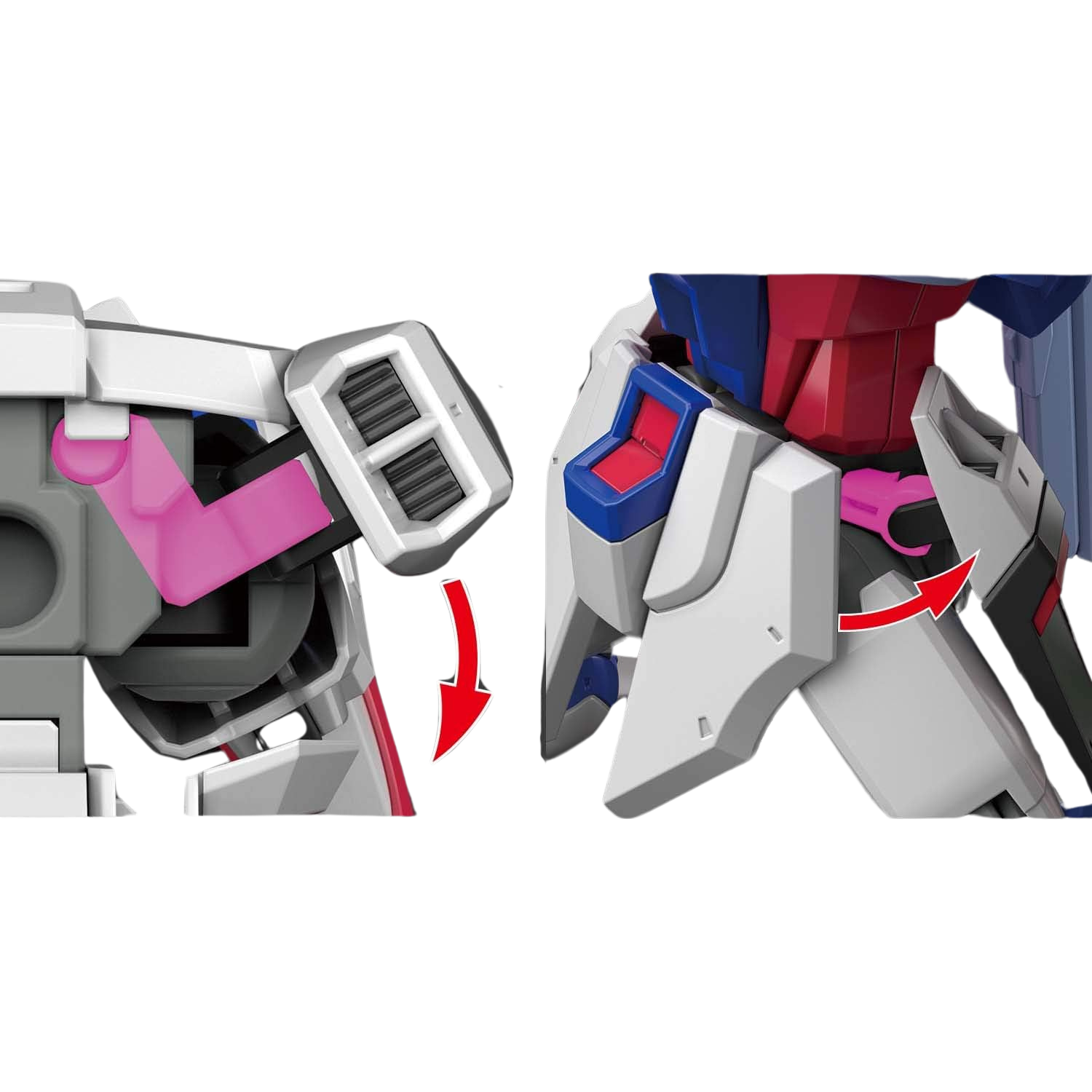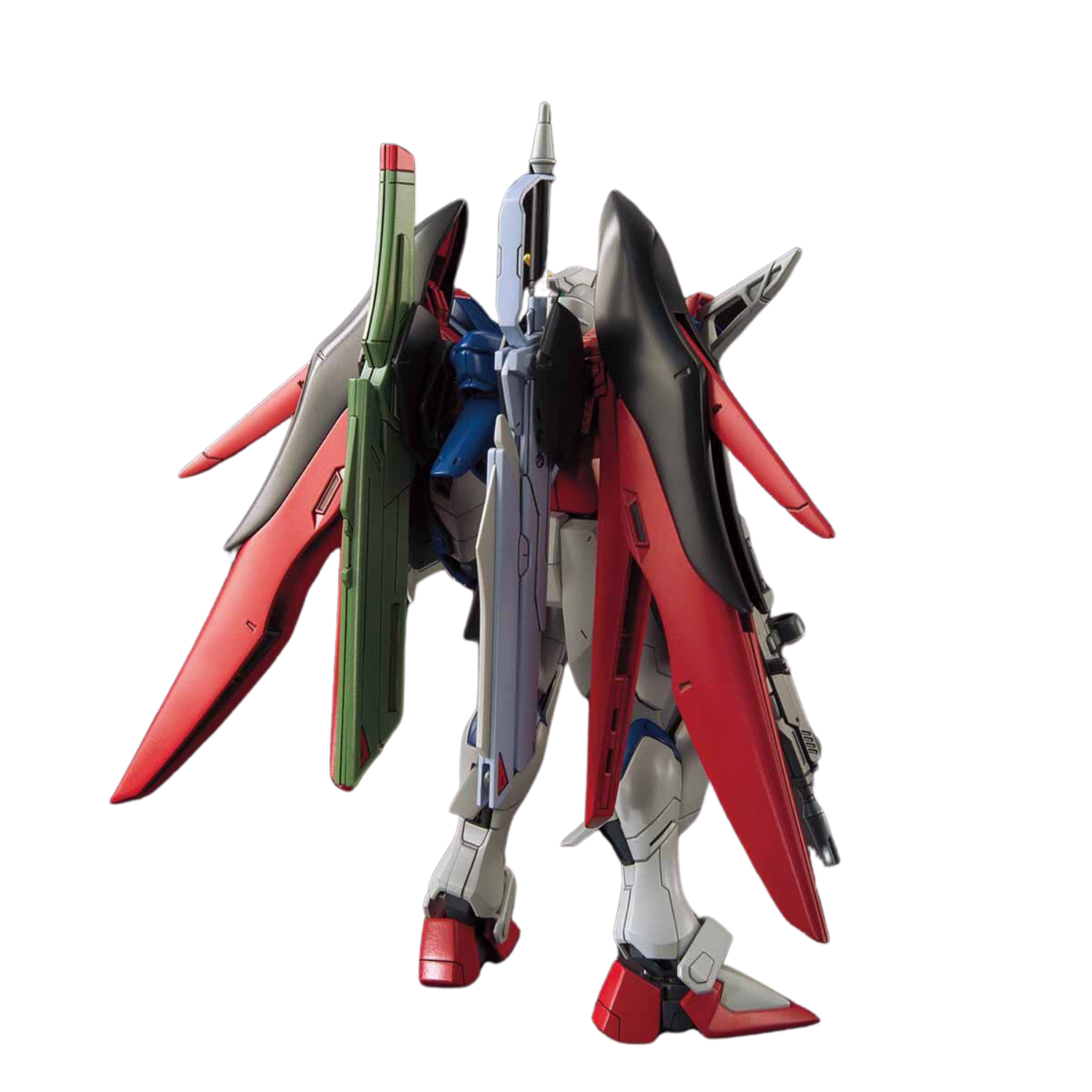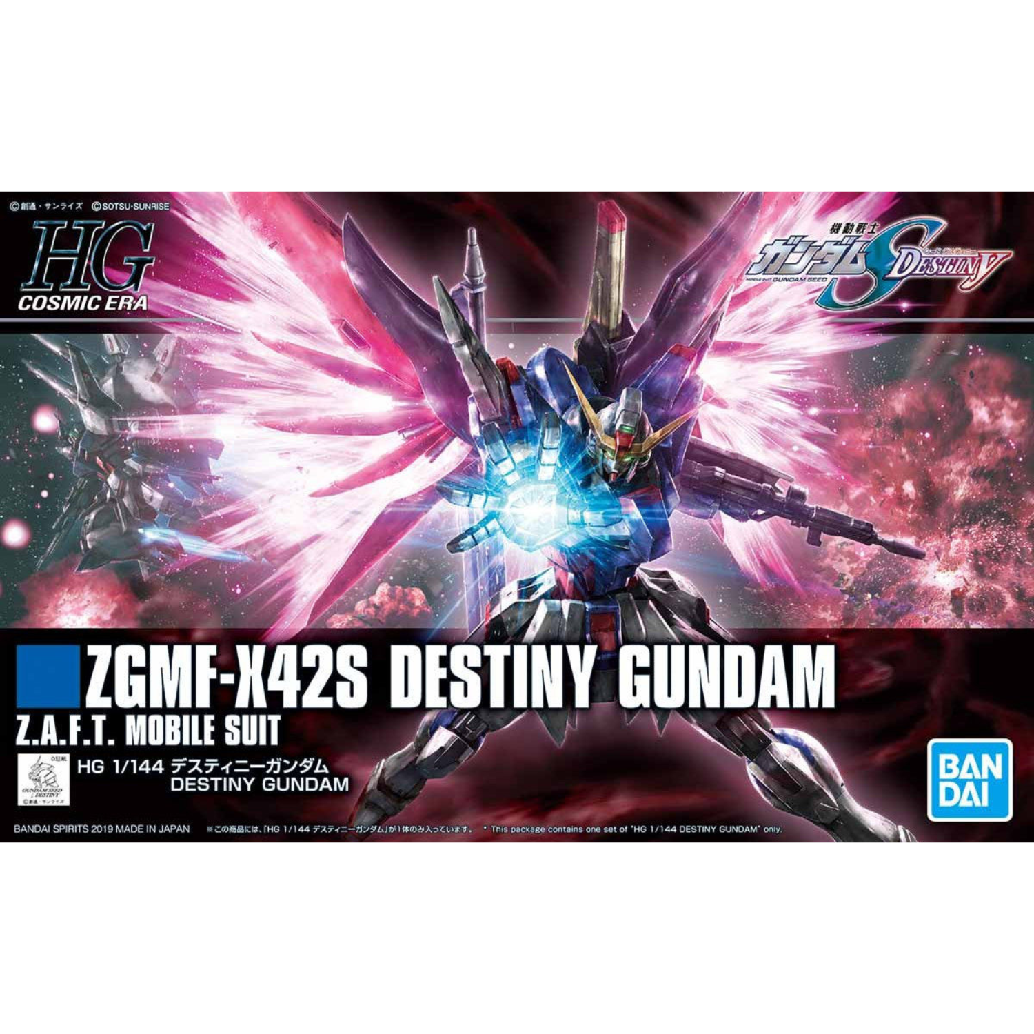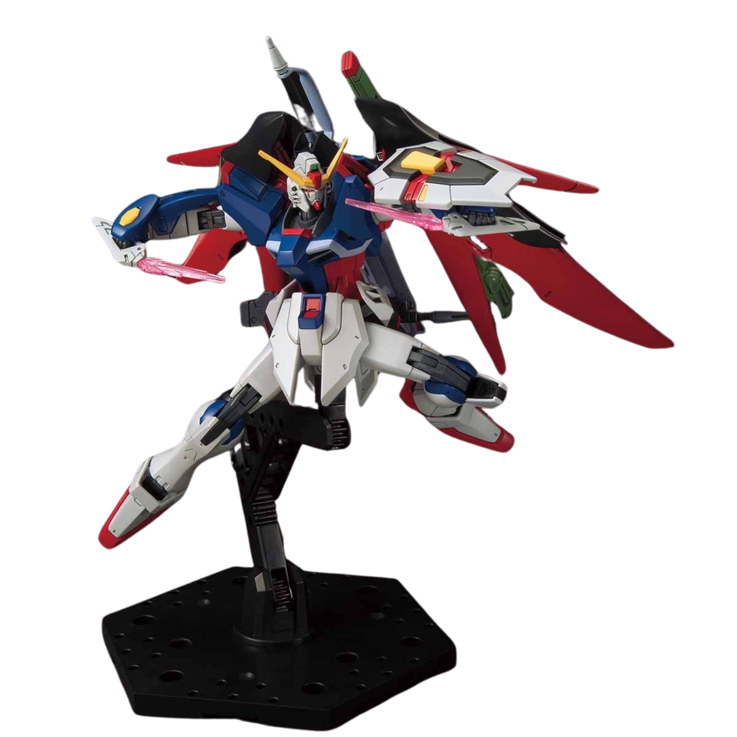 The HGCE 1/144 #224 Destiny Gundam, piloted by Shinn Asuka in Mobile Suit Gundam SEED Destiny, is a completely new mold featuring enhanced articulation and a striking array of weapons and effect parts. This updated kit includes clear-cast Wings of Light and various beam effect parts, allowing for dynamic and iconic poses. Molded in color for a stunning finish without the need for painting, this snap-fit kit also includes foil stickers for added detail.