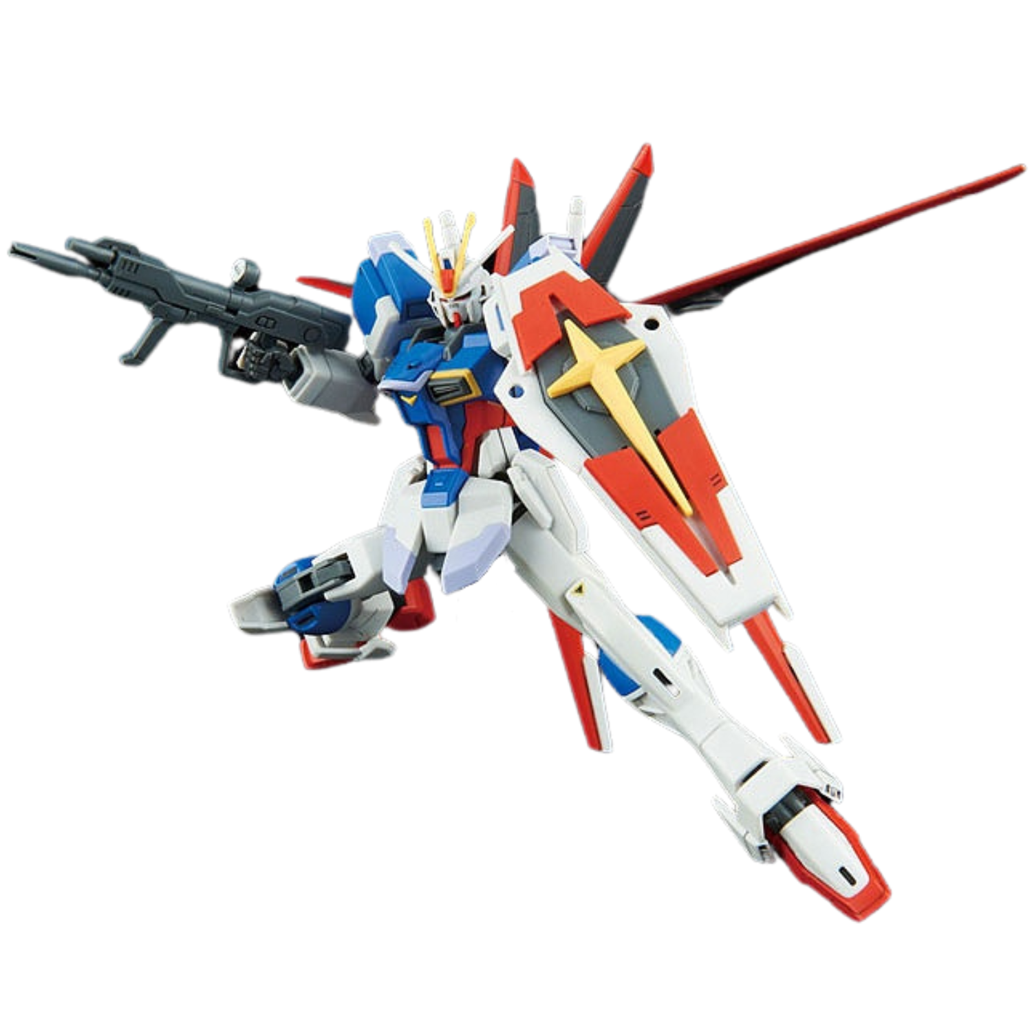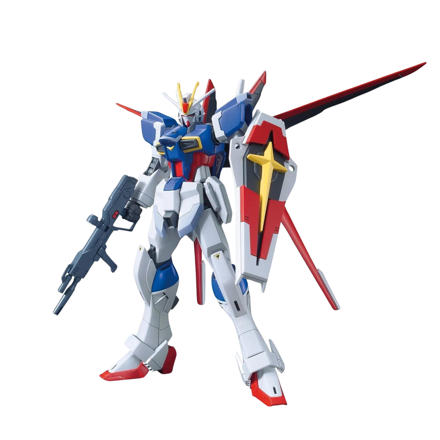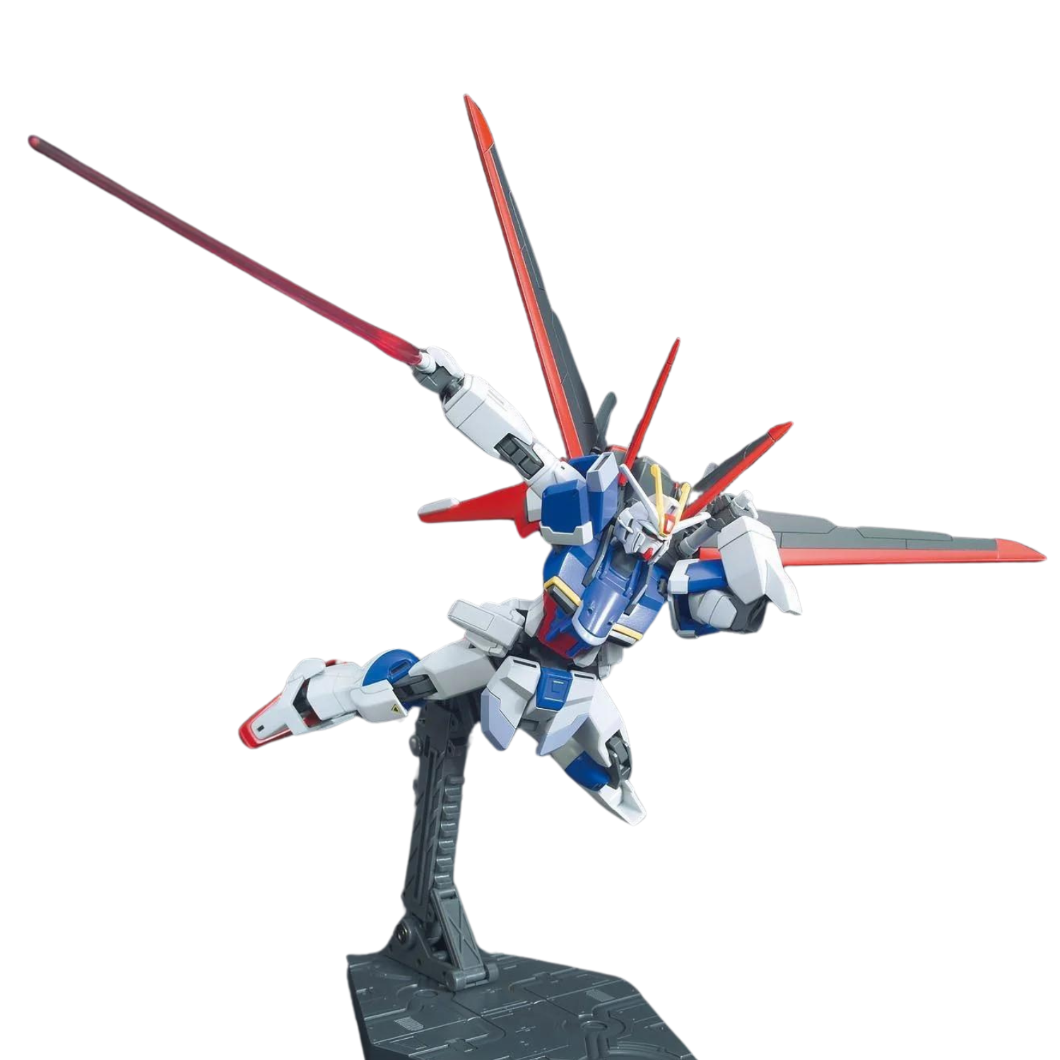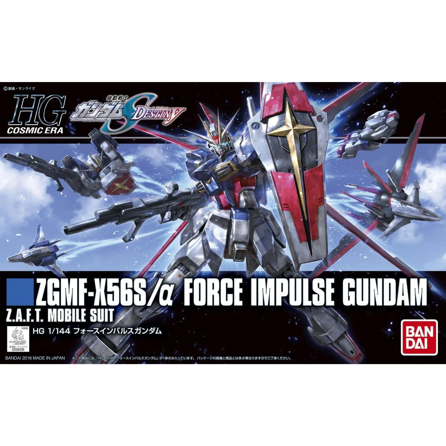 The HGCE 1/144 #198 Force Impulse Gundam, featured in Mobile Suit Gundam SEED Destiny, joins the REVIVE lineup with enhanced articulation and design. This kit includes multiple accessories like the high-energy beam rfl, two Vajra beam sabers, the Core Splendor, and the Silhouette Flyer. The kit can also separate into the chest flyer and leg flyer, offering exciting display options. Molded in multiple colors, it requires no painting, and foil stickers are provided for added markings.