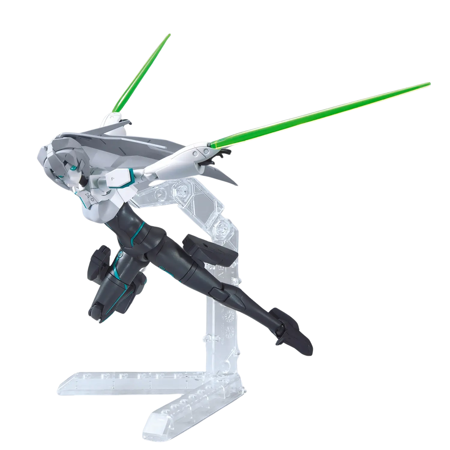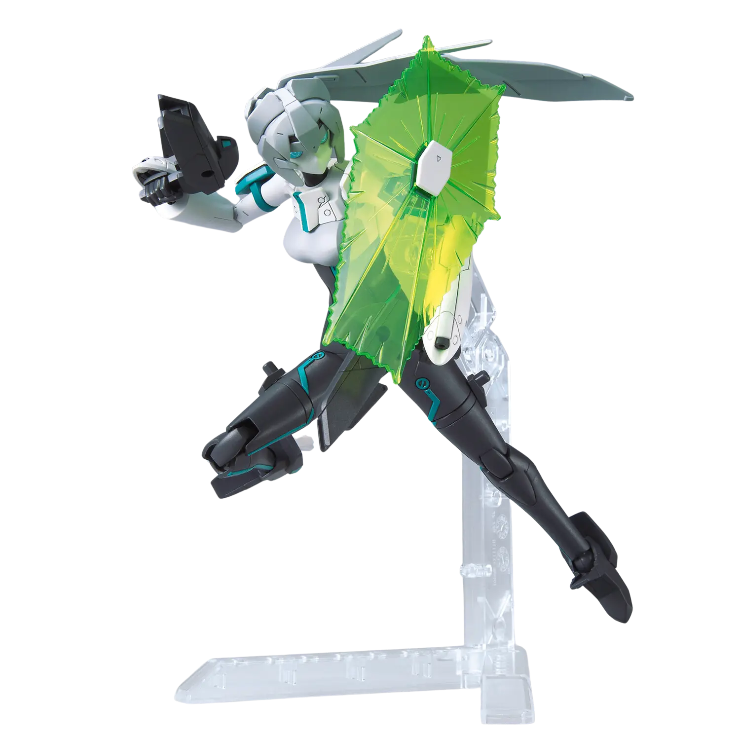 The Mobile Doll May from Gundam Build Divers Re:RISE makes her debut in the HGBD:R lineup! This unique kit allows you to switch between her real-world appearance and her MS-state look, delivering versatility and style. Equipped with two beam hgns, beam sabers, and a beam shield, Mobile Doll May is ready for battle. Articulated for dynamic posing, she also comes with three expression parts for customization. With a display base included, this kit is perfect for showcasing her action-packed design!