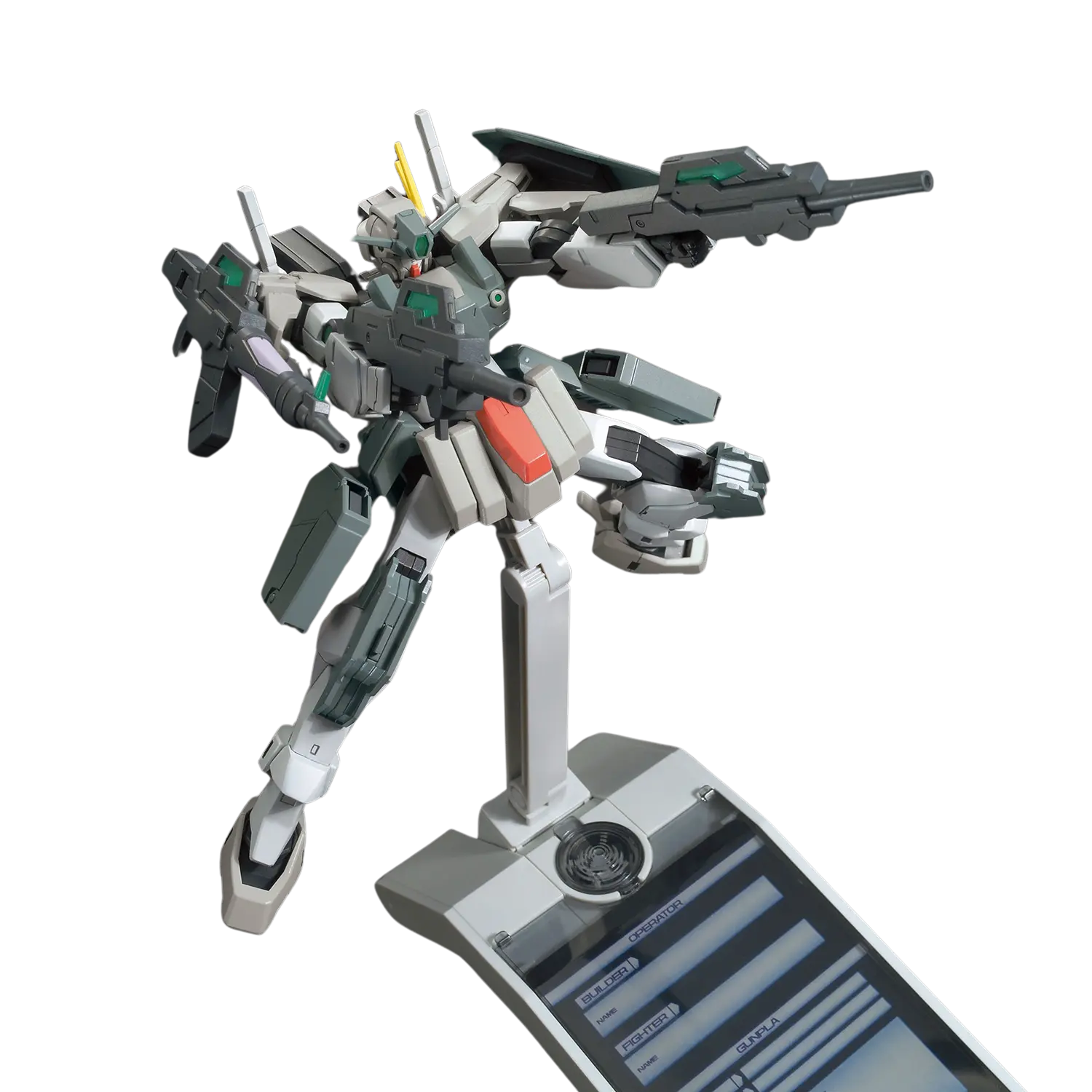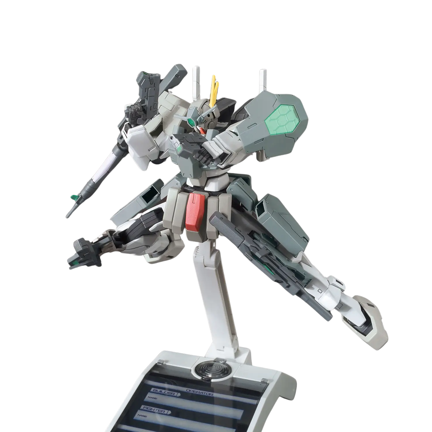 The HGBF 1/144 Cherudim Gundam Saga Type.GBF is a tactical powerhouse with an arsenal that lives up to its "Seven Gn" concept. Inspired by Gundam 00's Cherudim Gundam Saga, this Build Fighters version is designed in a sleek gray tactical color scheme. Fully articulated after assembly, it features head sensors that can open and close, adding to its dynamic design. Armed with seven different weapons, including two GN beam gns, two GN beam gn IIs, and two GN submachine gns, this model is a versatile and action-packed addition to any collection.