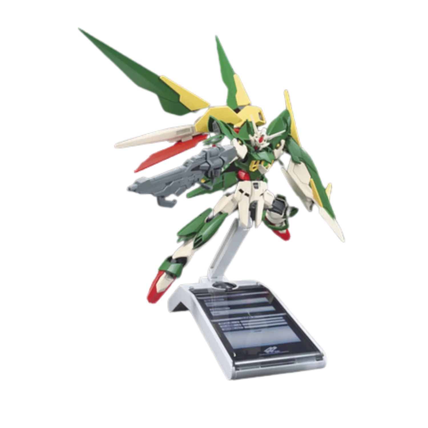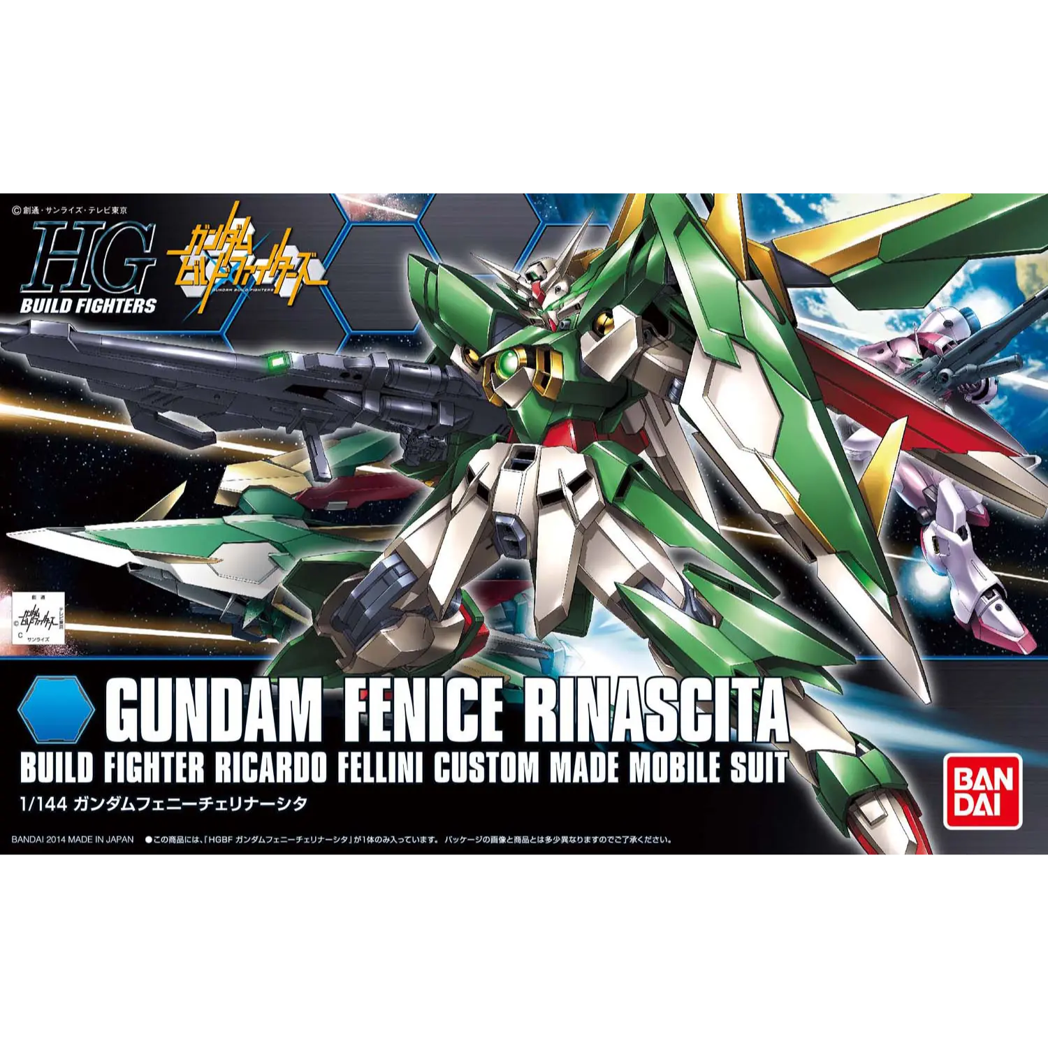 The 1/144 Gundam Fenice Rinascita from Gundam Build Fighters is Ricardo Fellinni's upgraded mobile suit, equipped with an array of weapons and the ability to transform into flight mode. This High Grade (HGBF) kit includes the buster rifle, beam rapier, and Rinascita shield for versatile display options.