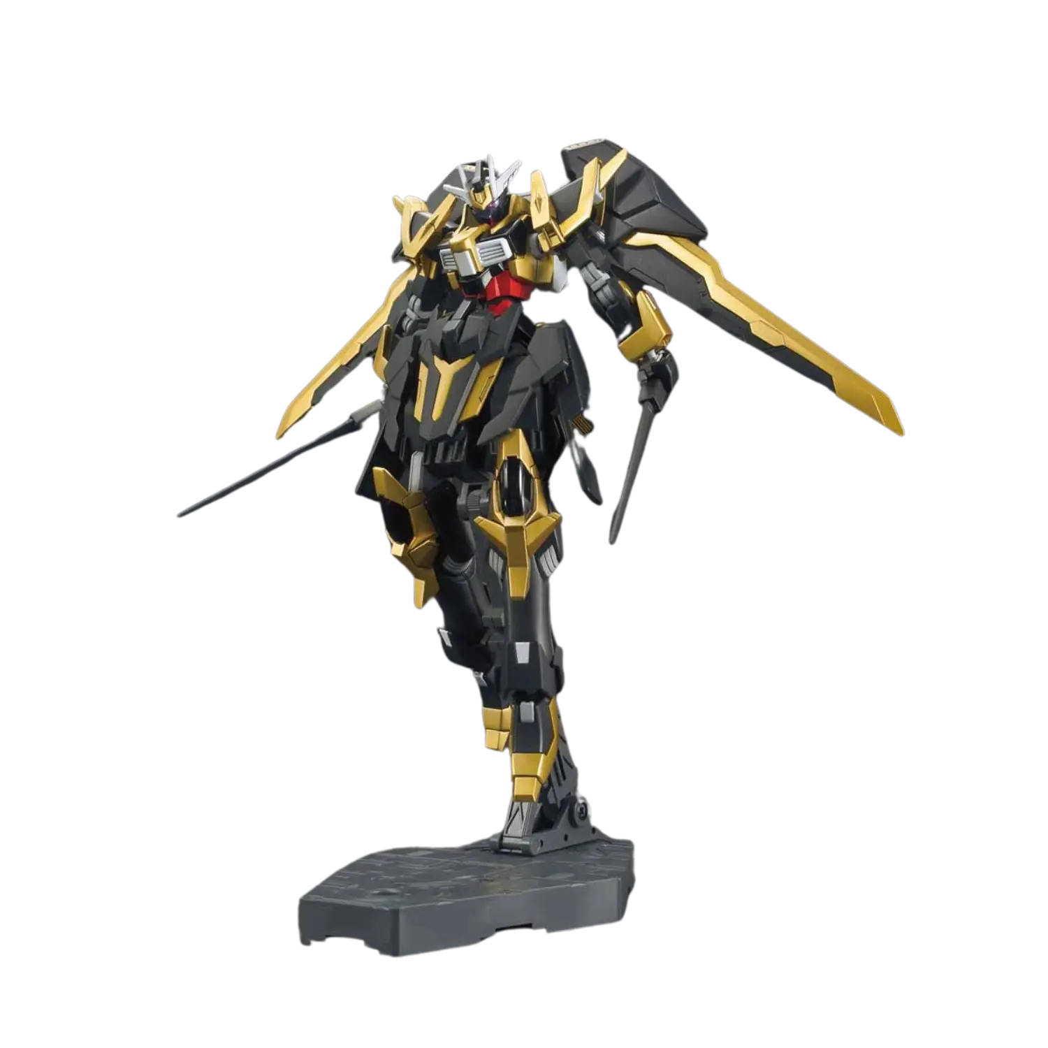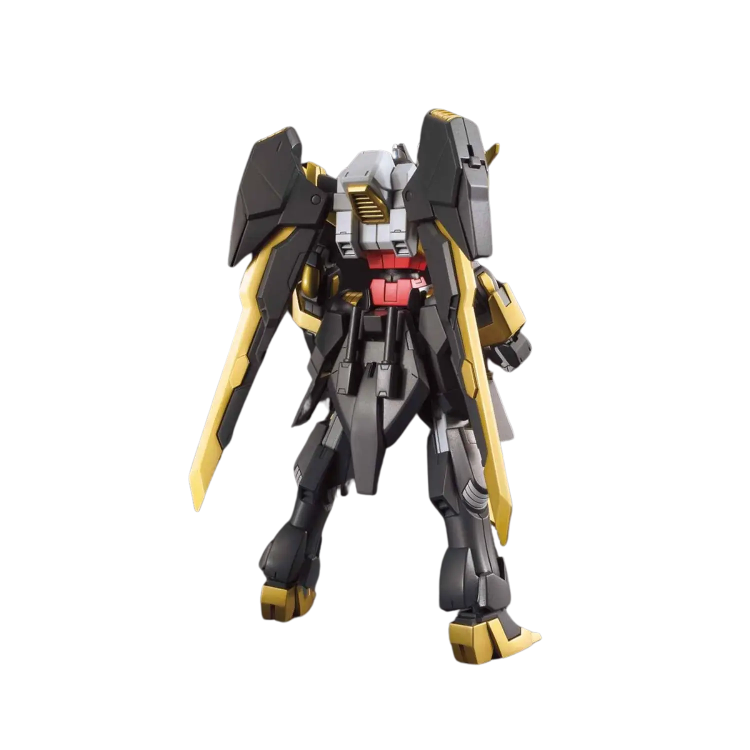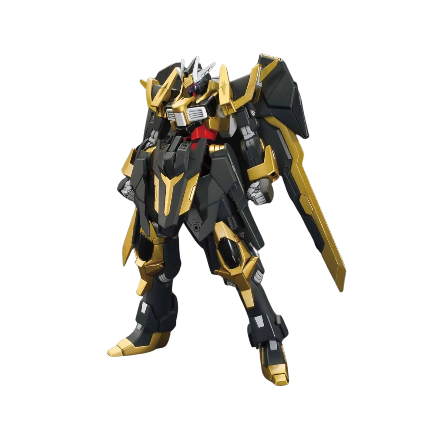 The 1/144 Gundam Schwarzritter from Gundam Build Fighters Amazing Ready joins the High Grade (HGBF) line, featuring a transformable backpack that converts into two powerful sword weapons. This model kit allows for dual-wielding or combining the swords for a single large blade display.