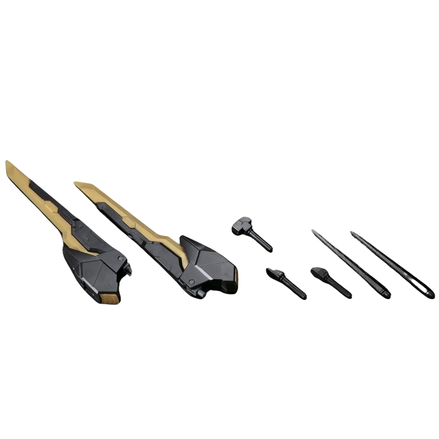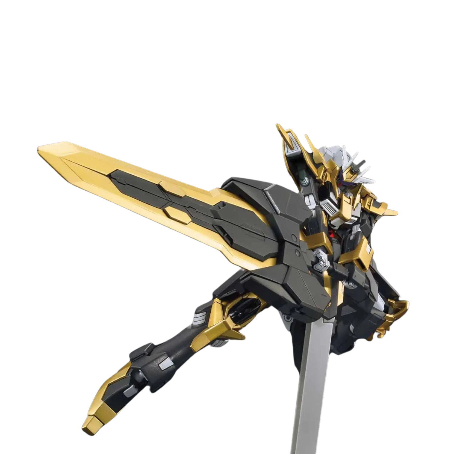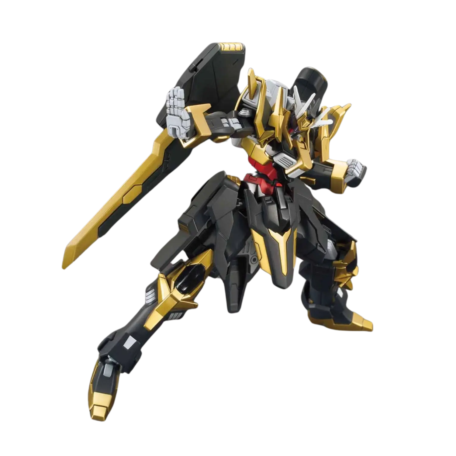 The 1/144 Gundam Schwarzritter from Gundam Build Fighters Amazing Ready joins the High Grade (HGBF) line, featuring a transformable backpack that converts into two powerful sword weapons. This model kit allows for dual-wielding or combining the swords for a single large blade display.