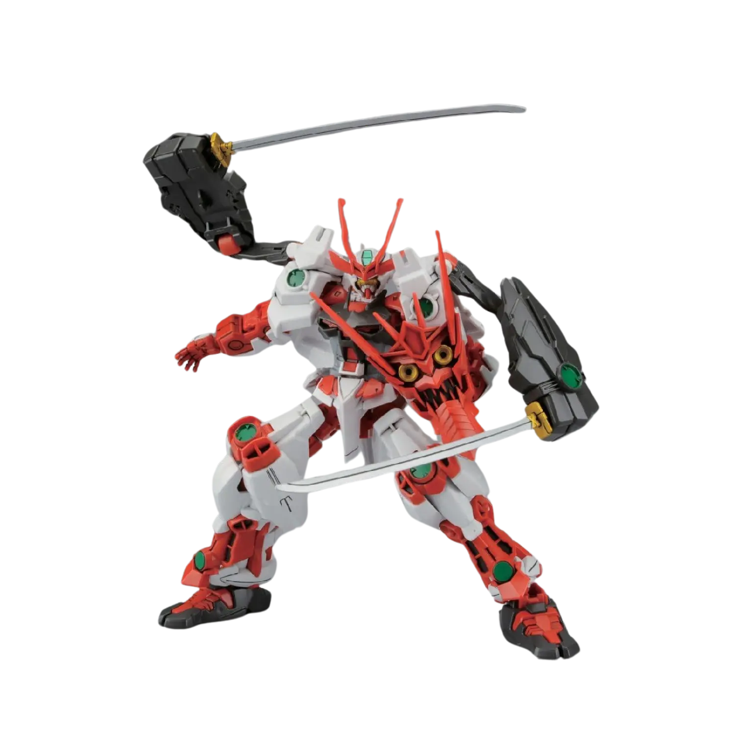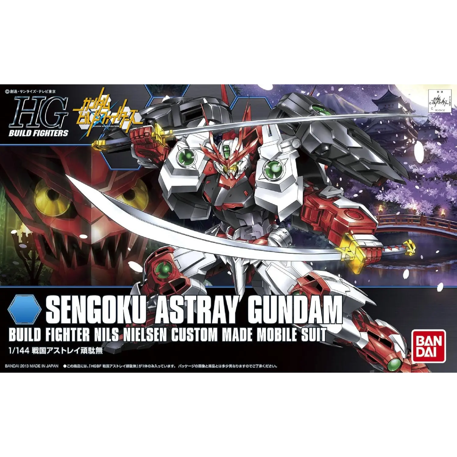 The 1/144 Sengoku Astray Gundam from Gundam Build Fighters joins the High Grade (HGBF) line. Equipped with two katanas mounted on hidden shoulder arms and a devil shield on its back, this custom Gundam is battle-ready with unique display options.