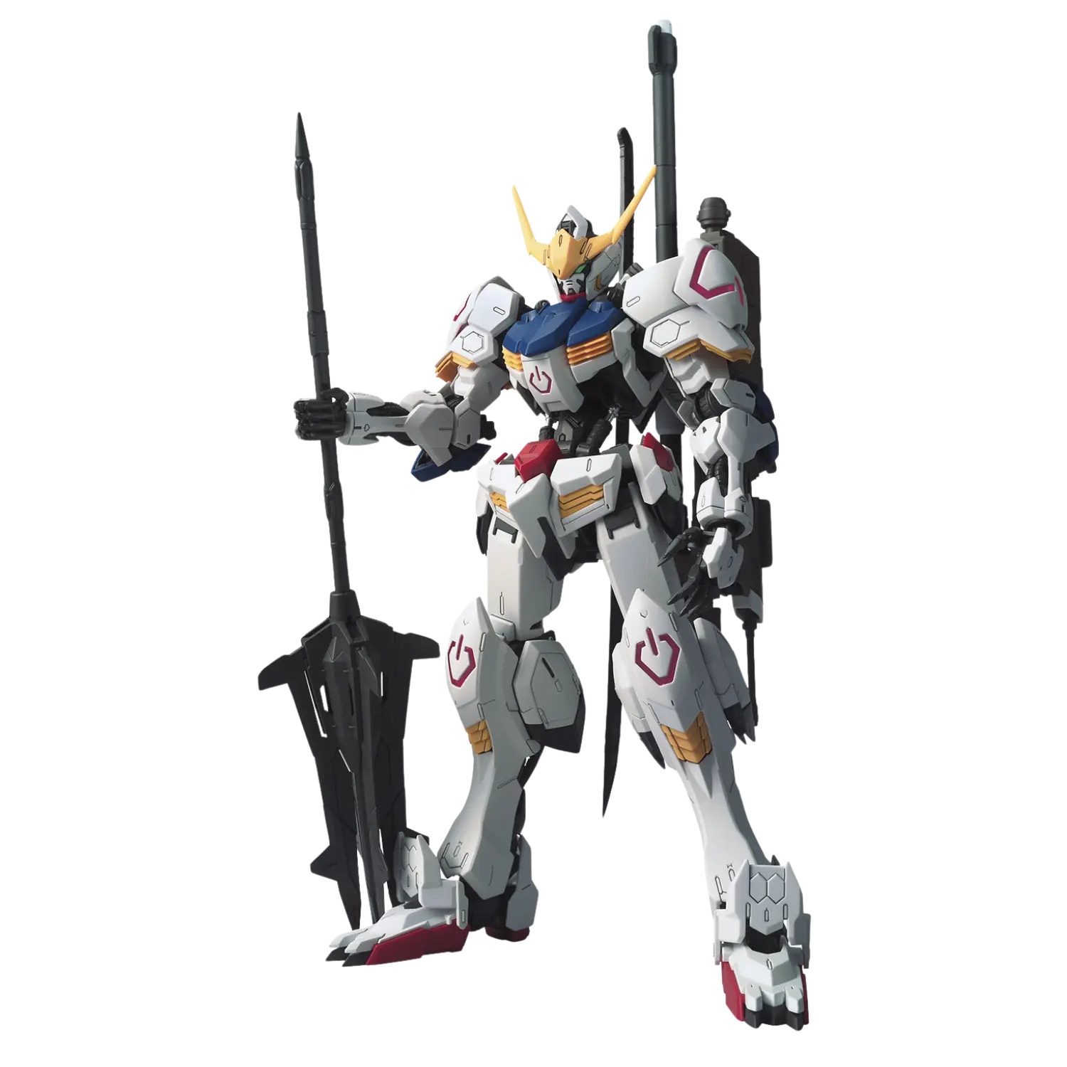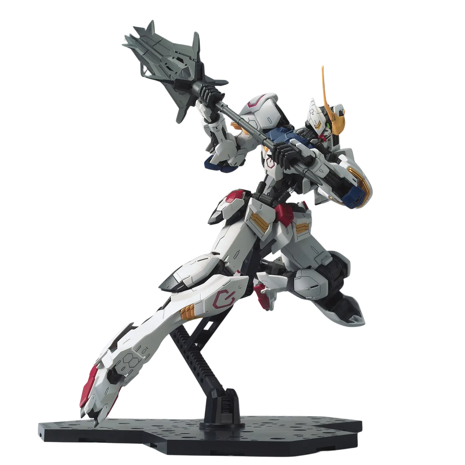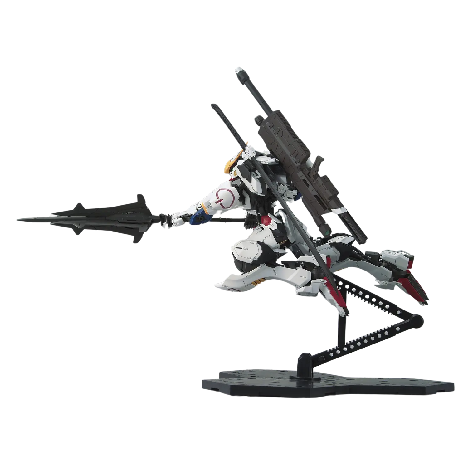 The MG 1/100 Gundam Barbatos from "Mobile Suit Gundam: Iron-Blooded Orphans" brings the fourth form of the main Gundam to life in stunning detail. Featuring a meticulously crafted internal frame, including the Ahab Reactors and piston mechanisms, this model boasts dynamic articulation and accurate color separation. The chest includes a unique rotation gimmick for the Ahab Reactors, while the knee and waist articulation provide impressive posing capabilities. The included weapons feature sliding and folding gimmicks for enhanced display options, making this kit a must-have for IBO fans.