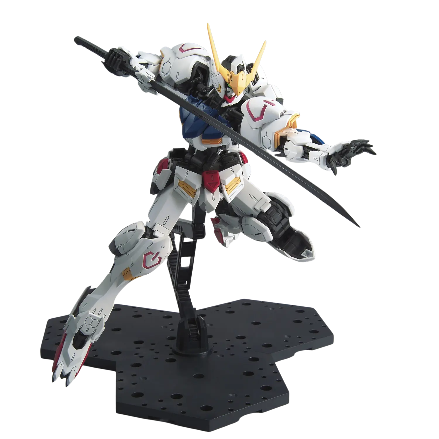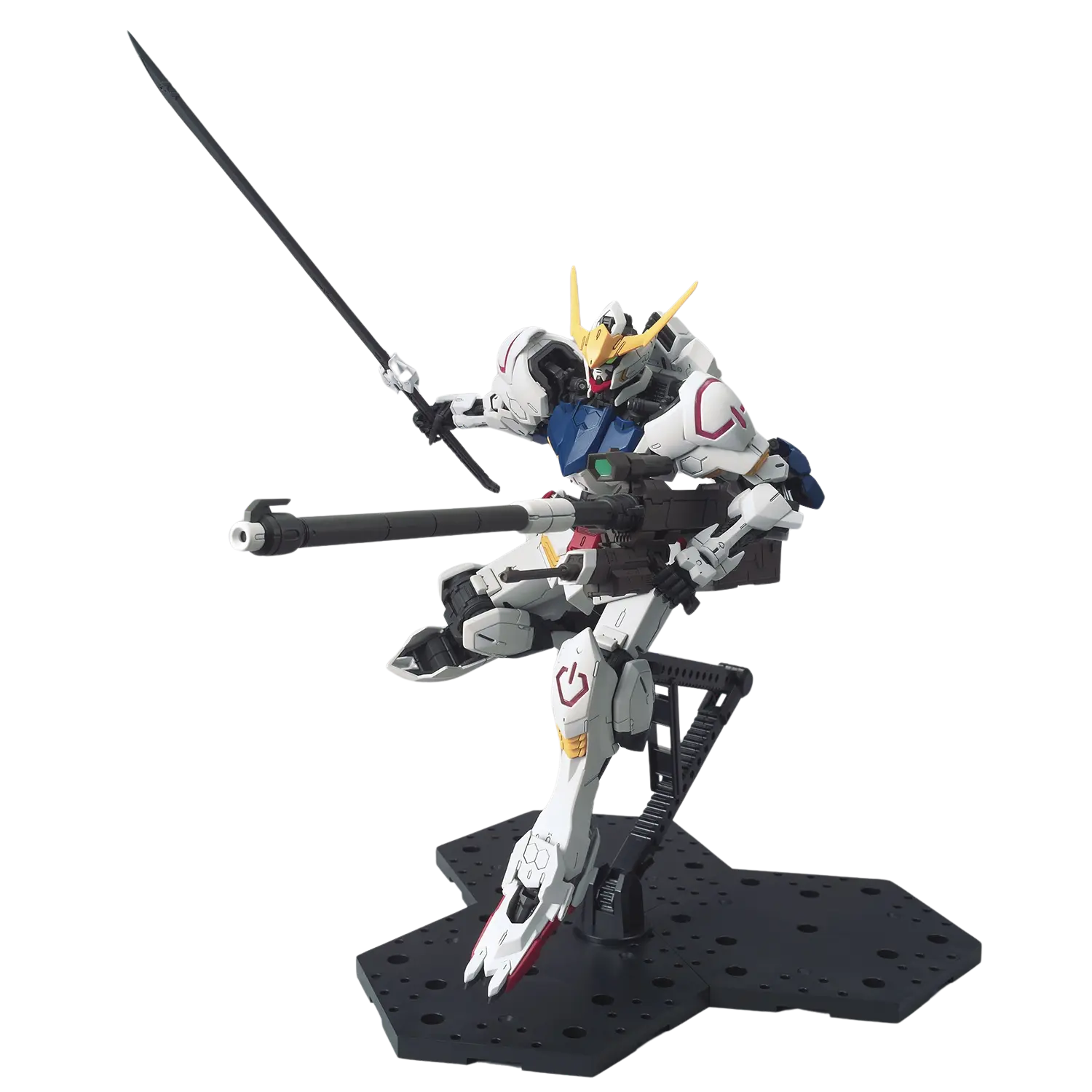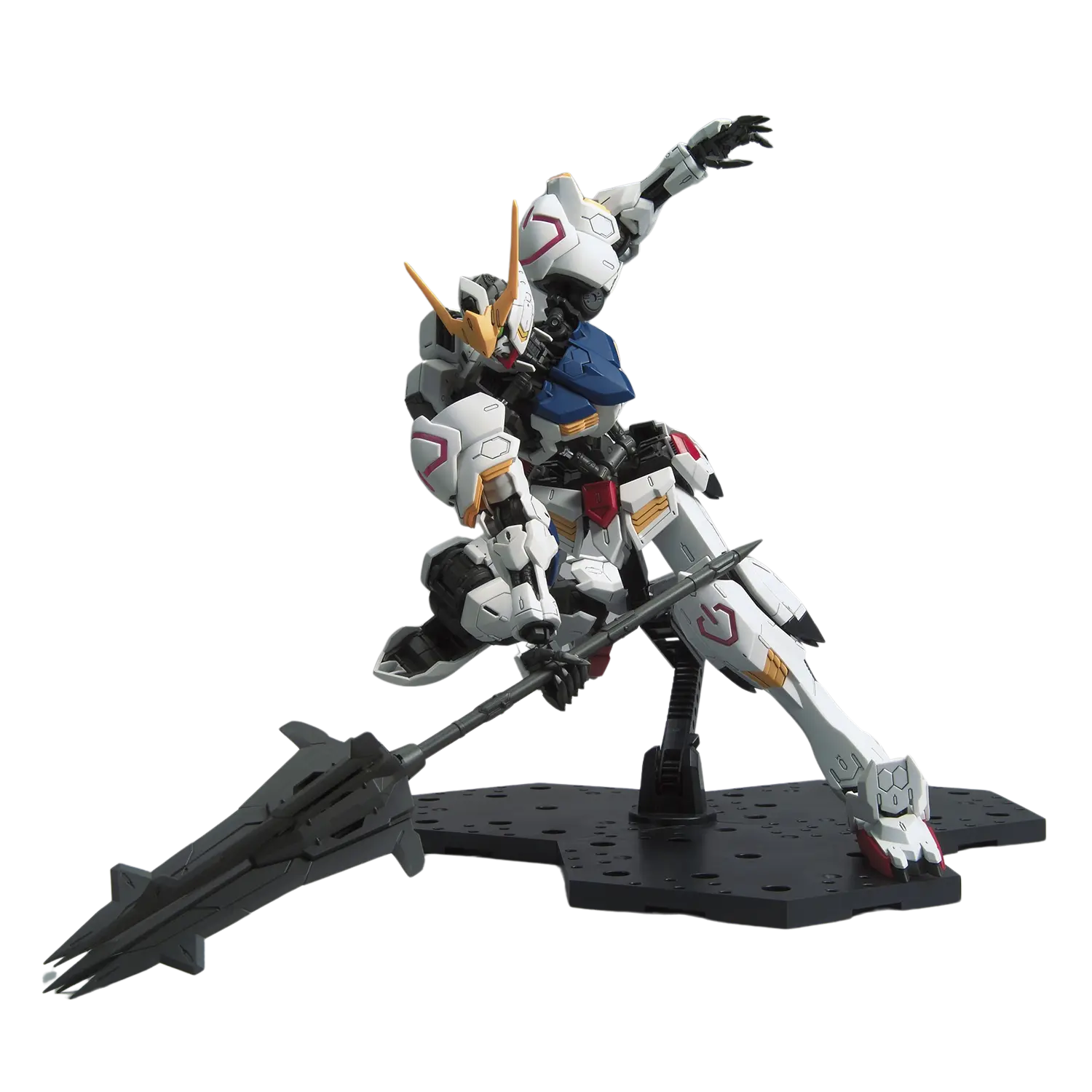 The MG 1/100 Gundam Barbatos from "Mobile Suit Gundam: Iron-Blooded Orphans" brings the fourth form of the main Gundam to life in stunning detail. Featuring a meticulously crafted internal frame, including the Ahab Reactors and piston mechanisms, this model boasts dynamic articulation and accurate color separation. The chest includes a unique rotation gimmick for the Ahab Reactors, while the knee and waist articulation provide impressive posing capabilities. The included weapons feature sliding and folding gimmicks for enhanced display options, making this kit a must-have for IBO fans.
