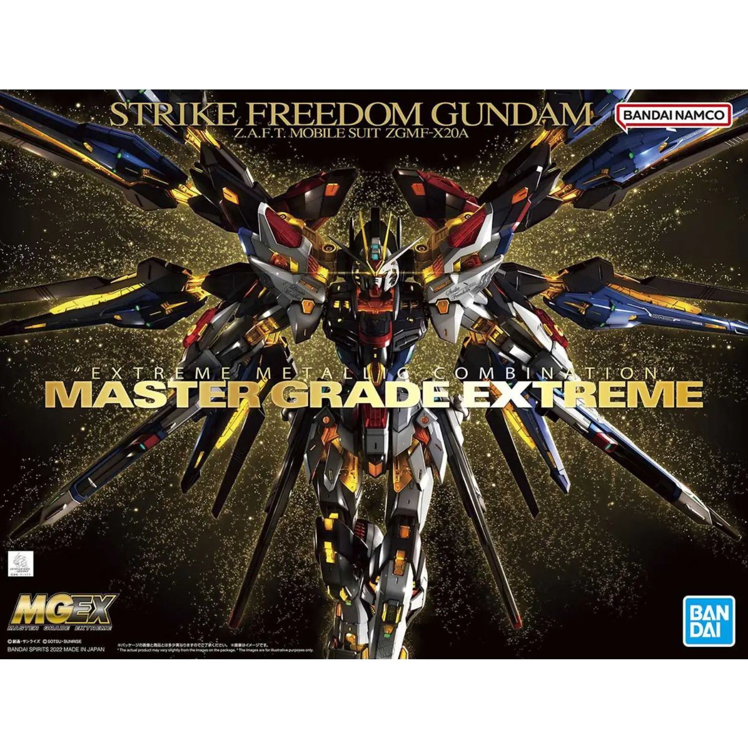 The MGEX line reaches new heights with the Strike Freedom Gundam, showcasing an unparalleled metallic expression for the inner frame. This 1/100 scale kit uses six types of metallic finishes, including three special processes and two metallic moldings, along with etched stickers to give it an impressive metallic look. Clear red parts and open gaps emphasize the frame further, while a full array of articulation and weaponry makes this kit a must for any Gundam fan. Strike Freedom’s arms, legs, and DRAGOON wings are designed for dynamic poses, bringing Gundam Seed Destiny’s Strike Freedom to life in exquisite detail.